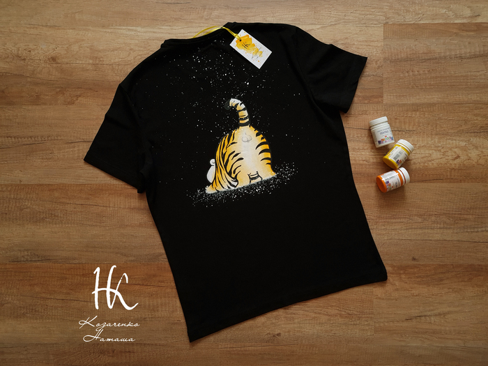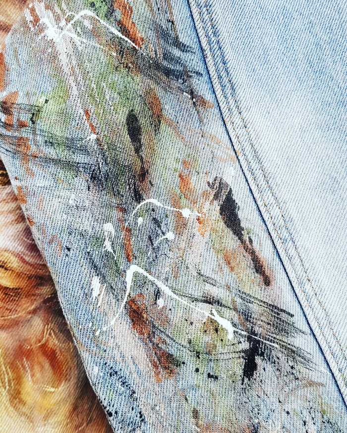 Масштабность тоже играет огромную роль.Рукава я обыграла ещё более интересной техникой–это брызги, полосы, и ещё огромное количество различных действий...