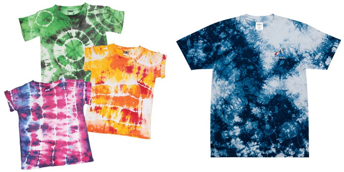 Идея простая – красить одежду неравномерно. Если туго завязать ткань узлом, а потом обмакнуть в краску, то ткань прокрасится неравномерно. Если сложить ткань в несколько раз, туго перевязать, а потом опять обмакнуть в краску, то снова получим неравномерное окрашивание. А дальше всё ограничено только фантазией. Можно складывать ткань «гармошкой», можно закручивать спиралью, можно обматывать вокруг трубы и делать складки.
