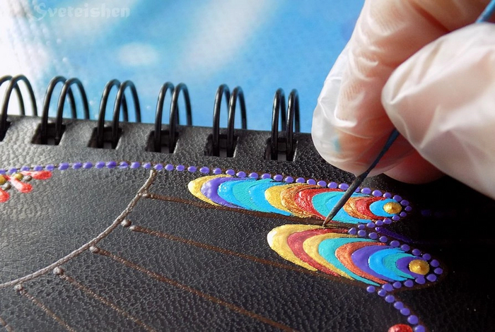 Роспись выполнена масляными красками в основном на тонированном халцедоне + много слоев лака.