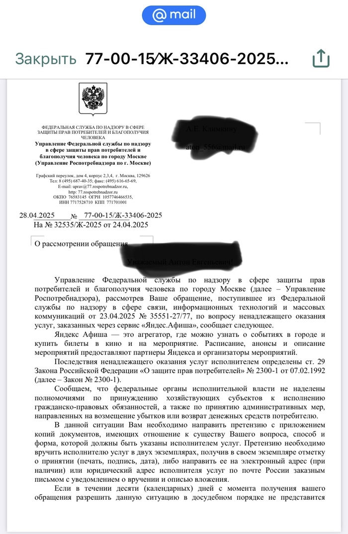 В феврале писал пост о том, как меня ввел в заблуждение Яндекс при покупке билетов на Яндекс Афише, пост тут. Если коротко то при оплате была одна цена, а списали другую.