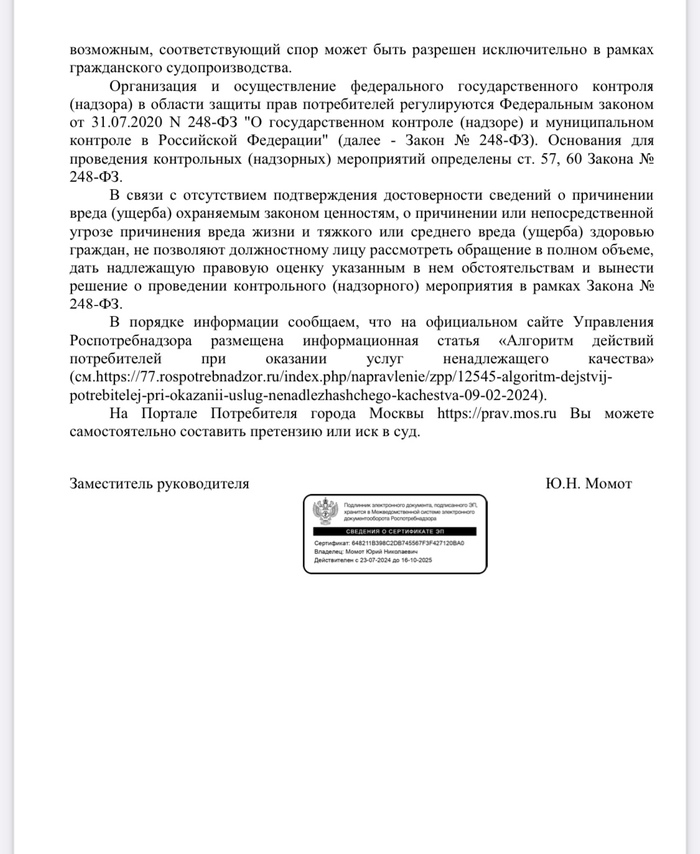 Роскомнадзор переслал мое обращение в Роспотребнадзор: