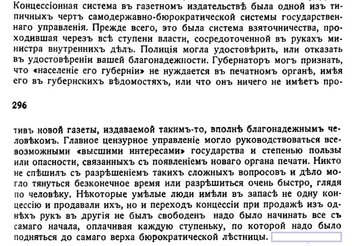 После освободительных реформ особенно сильно почувствовалась душная атмосфера взяточничества. Учредили государственный контроль, но не прошло и 10 лет, как это ведомство стало бюрократической трясиной, в которой, мало-помалу завелось обычное взяточничество. Единственным результатом деятельности контроля можно считать удорожание взяток. Как всякий новый налог ложится на потребителя, так и всякий новый аппарат, выдумываемый чиновниками якобы для искоренения взяток, только сильнее и обильнее их выжимает. Вообще, с учреждением контрольных аппаратов, взятка настолько легализовалась и упорядочилась, что стала почти гласной, почти регистрированной."