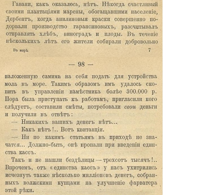 Источник: Вас. Немировичъ-Данченко. "Въ морѣ (очерки и впечатлѣнiя изъ поѣздокъ по низовьямъ Волги и по Каспию)." Типографiя Т-ва И. Д. Сытина. Пятницкая улица, соб. д. Москва. — 1911 г.
