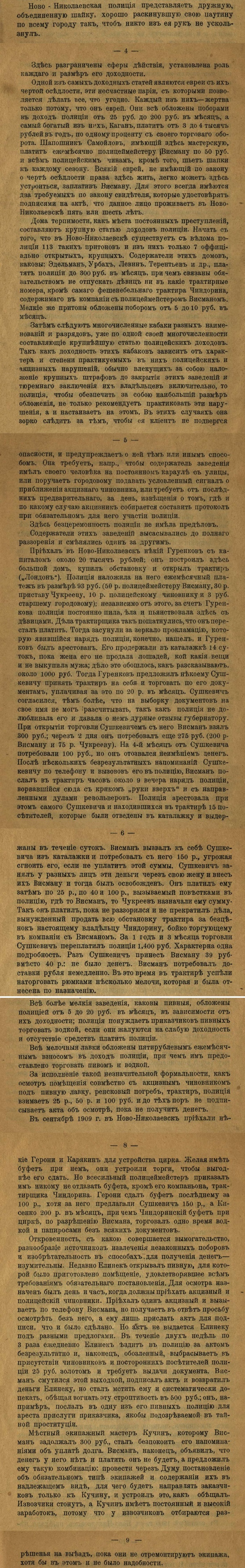 Источник: "Обыкновенная исторiя. (Изъ мемуаровъ Ново-Николаевской полицiи)." С.-Петербургъ. Типографiя Альтшулера, Фонтанка 96. 1910 г.