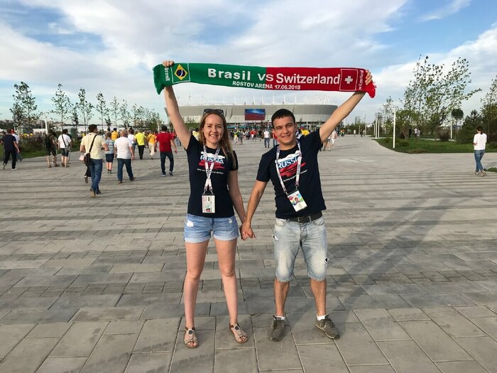 В день игры в Ростове царит праздник. Все центральные улицы перекрыты. По улицам гуляют болельщики сборных Швейцарии и Бразилии. Последние отличаются веселыми песнями типо "Месси Чао" и активными танцами, но мои симпатии в этой игре будут к Швейцарии, так как их база находится в родном городе Тольятти.И весь город поддерживал швейцарцев на этом турнире, как свою команду.