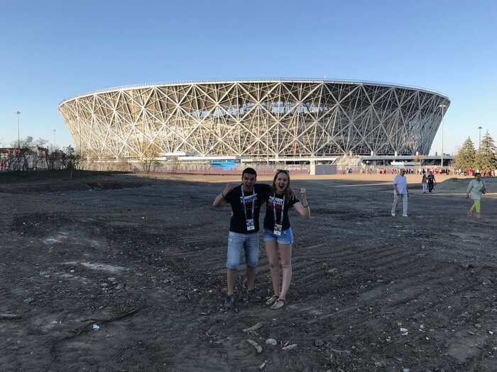 Чтобы попасть к нужному входу пришлось перелезать вместе с иностранцами через забор, а потом через дворы пробираться к автомобильной дороге, по которой вышли к нужному входу стадиона. И на протяжении всего пути нет ни одного волонтера, кто подсказал бы нам куда идти. Думаю, что гости нашей страны остались под впечатлением от увиденного, когда искали выход из типичного жилого двора со всеми его обитателями)))