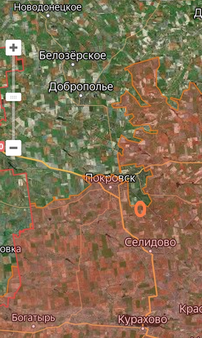 Развивая наступление в Покровске и продвигаясь на север, российские войска окружили Мирноград, оставив для выхода войск коридор шириной менее трёх километров, согласно карте от DeepState, украинской группы, отслеживающей развитие событий на поле боя. Богдан Януш, заместитель командира батальона 79-й десантно-штурмовой бригады Украины, заявил, что в котле, скорее всего, всё ещё сражаются несколько сотен украинских солдат.