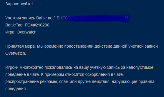 "С причиной блокировки вы можете ознакомиться в письме и бла бла бла...."