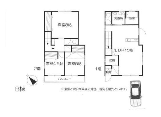 Очень стандартный японский домик. На втором этаже всегда есть отдельная раковина в коридоре. Узкая дверь на кухне - это мусор выставлять. Парковка своя.
