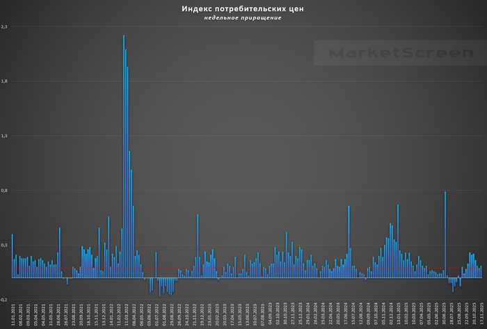 Инфляция в РФ с 11 по 17 ноября составила 0,11%, годовая замедлилась до 7,2%