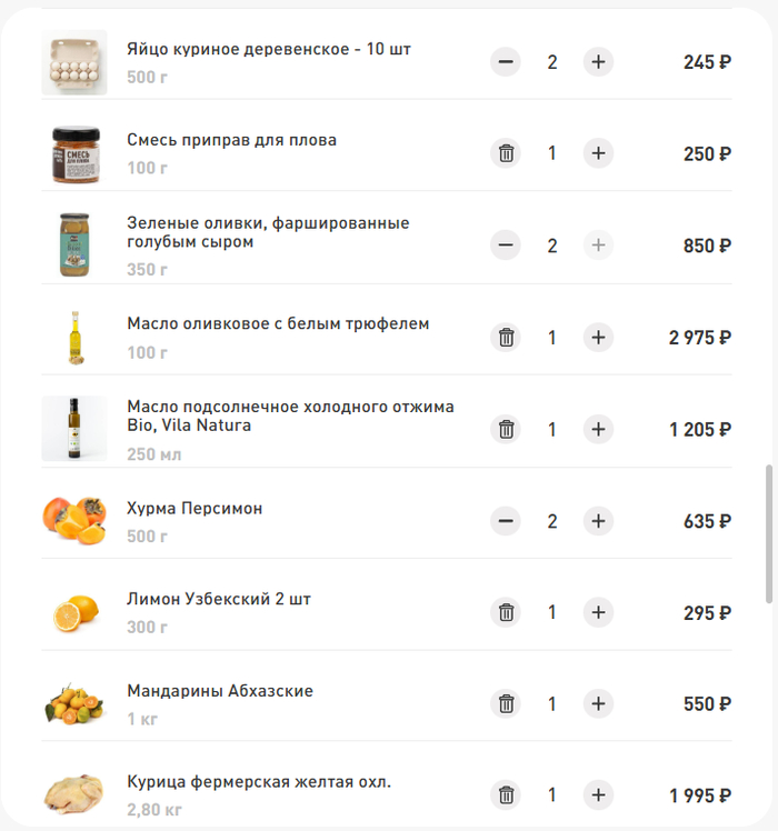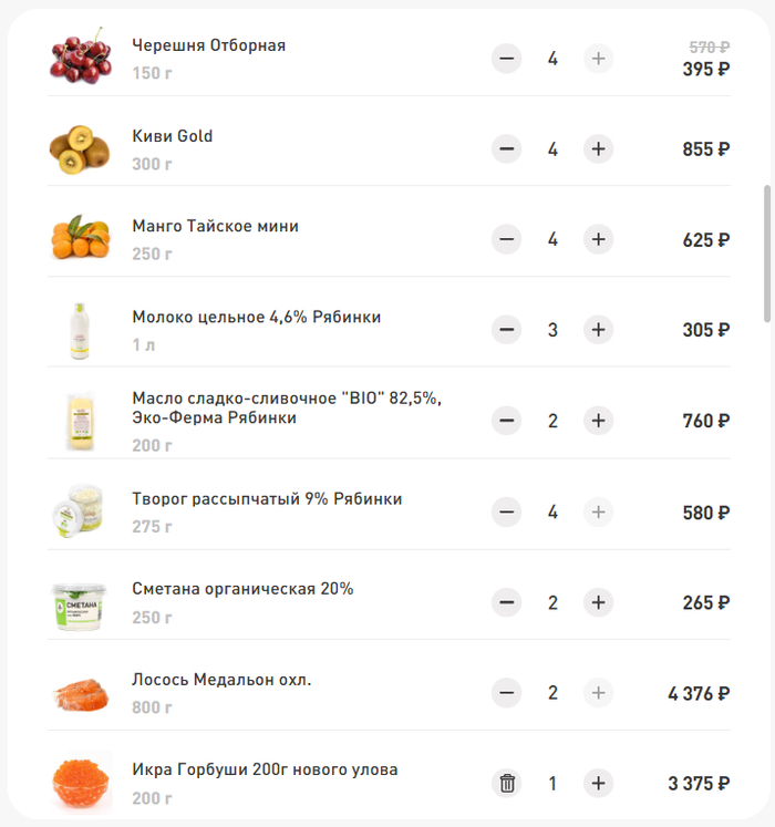 В целом, соглашусь. Только на продукты питания обычная семья среднего класса должна тратить около 300 тысяч рублей в месяц - примерно треть от заработка. Для проверки набросал корзину в магазине. Ничего лишнего, просто закуп на неделю: