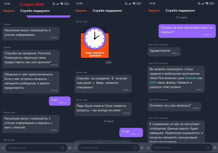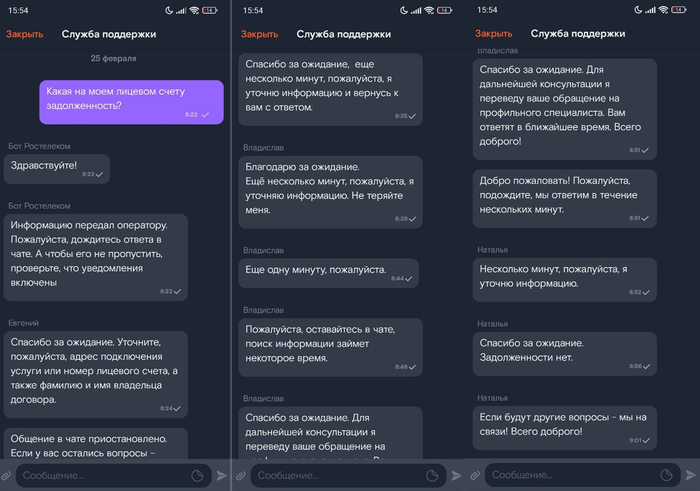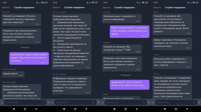 Прошёл еще один месяц, мой баланс из -800р превратился в -1600 рублей. Потрясающе. Я написал в поддержку, позвонил в колл-центр и оставил повторную претензию, также выбрав канал ответа - смс.