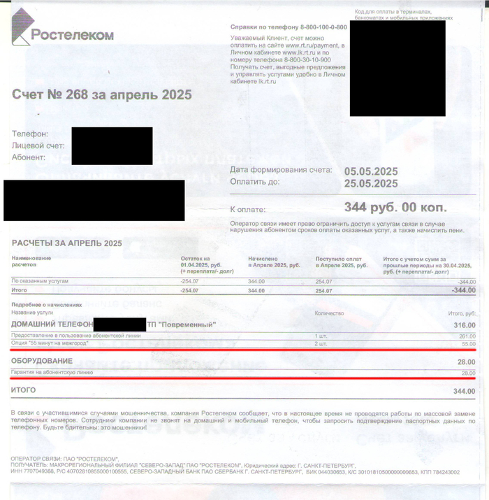 Действительно, я почему-то должен 500 руб Ростелекому