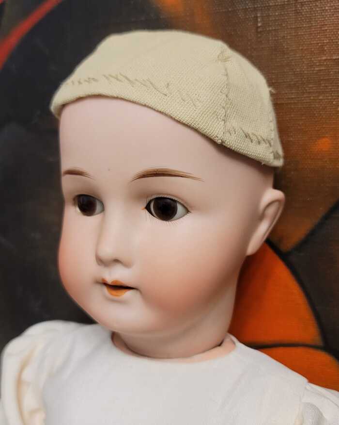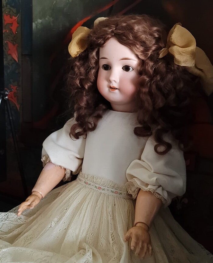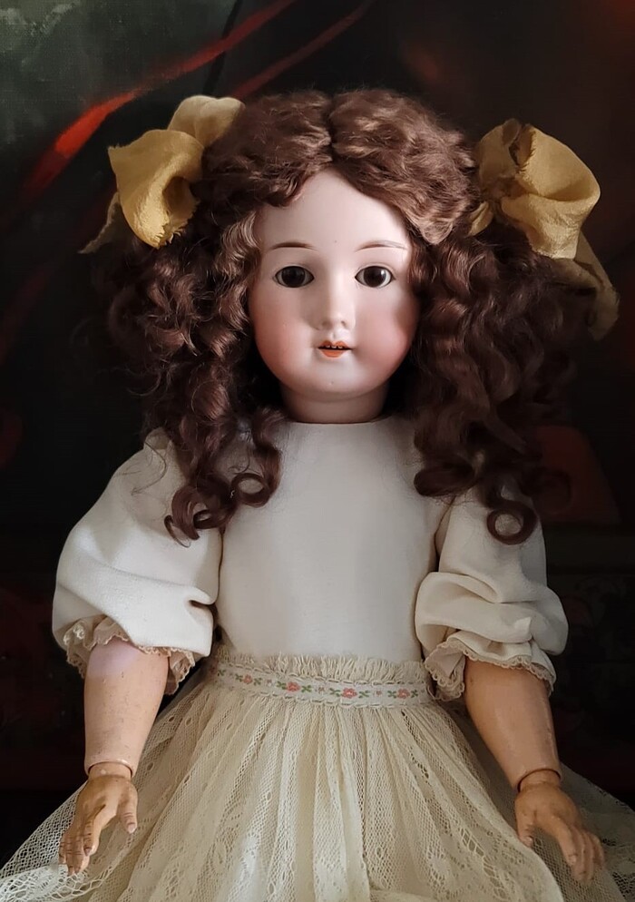 Недавно я разжилась антикварной куклой (58 см, William Goebel, модель B3, поступившая в производство примерно в 1912 году, но это не точно, я не знаток антиквариата), назвала её Аделью и начала приводить к виду, соответствующему моим представлениям о прекрасном. Кукла досталась мне в простеньком костюме и искусственном парике. Вот так выглядела девочка, когда я решила её купить (фото сделано прежней владелицей):