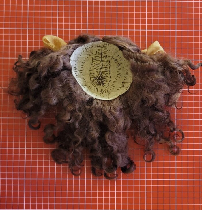 Я решила соблюсти технологию изготовления кукольного парика хотя бы условно и взять натуральную основу и натуральную шерсть. Сшила основу-шапочку из плотного хлопка: