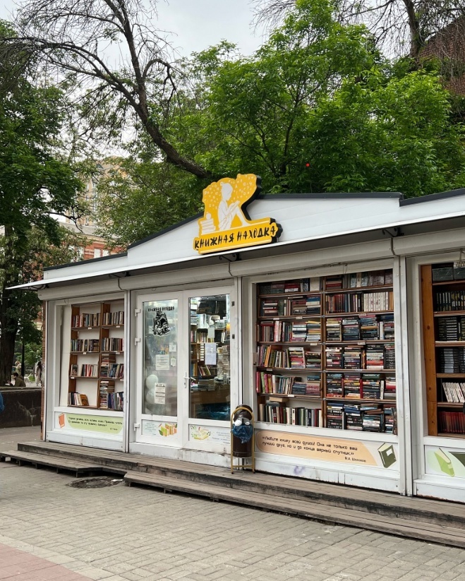 Рядом с ним стоит небольшой букинистический магазин, где почти задарма можно приобрести какие-нибудь детища советской полиграфической промышленности. В основном - это малоизвестные авторы очень нишевых жанров. Хотя Таня нашла там Новый завет и В.Гюго "Девяносто третий год"