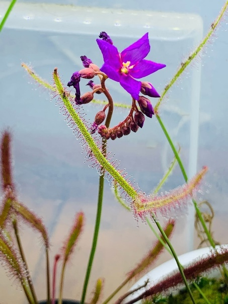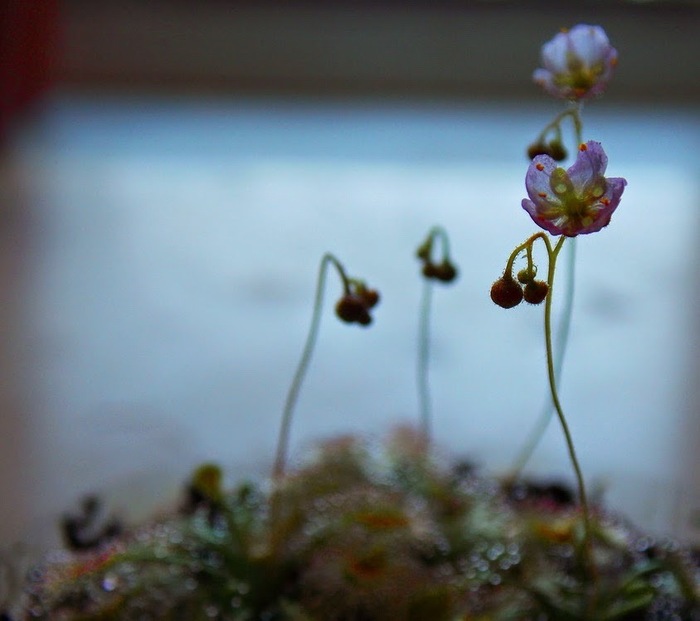 Росянки, очень интересная группа растений, особенно если наблюдать за охотой бурмани (Drosera burmannii) её реснички обхватывают жертву за несколько секунд. Но эта росянка относится к однолетним, хотя во многих источниках пишут о прохладной зимовке растения (10-12 C) значит, минимум двулетник)
