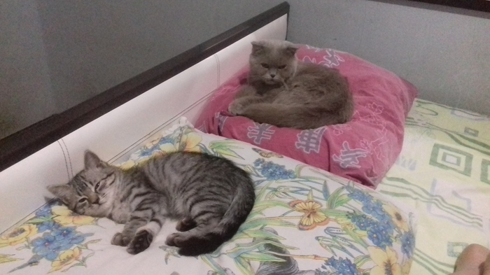 Кошка оценила в итоге плюсы нахождения своего сородича, и теперь у них проходят игривые бои, в последний бой вмешался песа, с выражением морды "че тут происходит?"), вот оно: