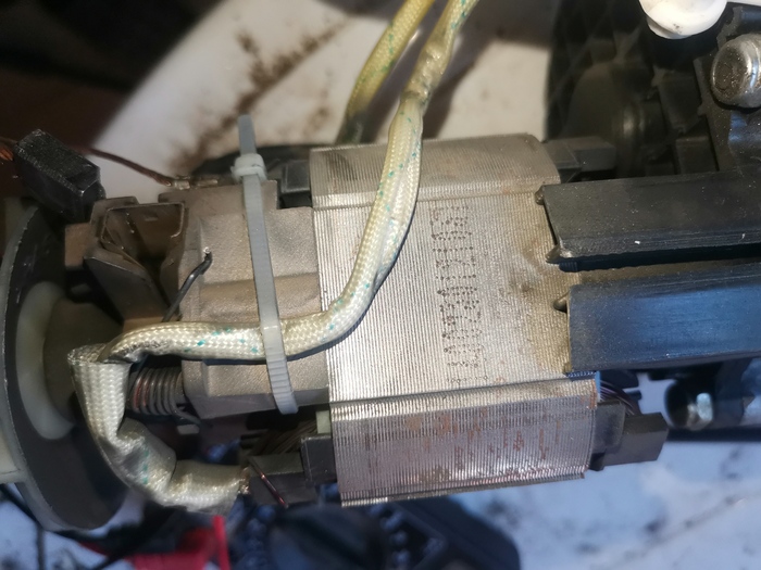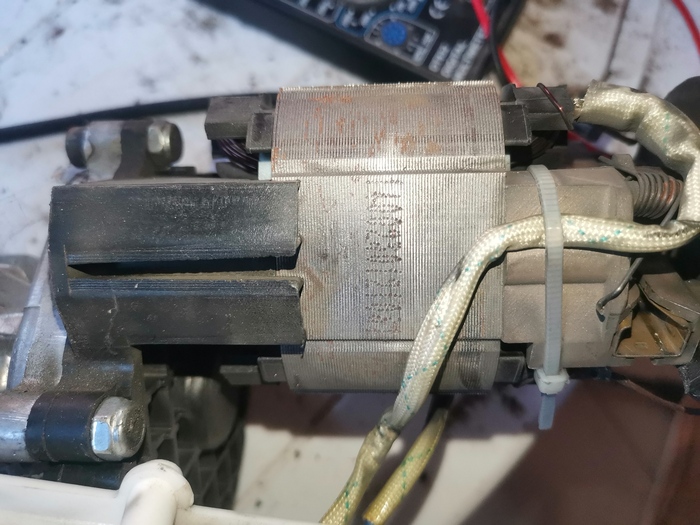 Диагноз: сгорела как минимум одна обмотка ротора, поднята одна ламель, износ щёток. Обмотка статора прозванивается норм, показывает сопротивление в районе 3.5 Ом на обоих катушках.