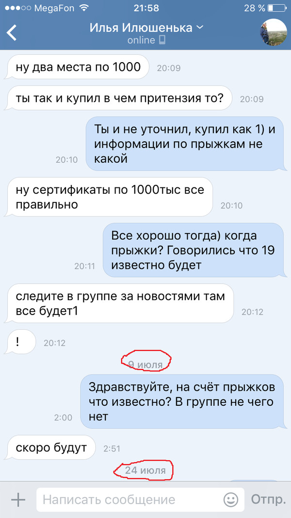 В группе я увидел что уже 2 места он продаёт по 1000р, что меня очень напрягло.