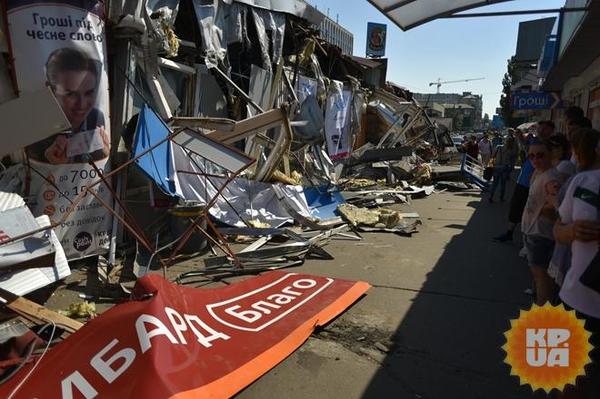 В Киеве возле метро Святошин 24.06.2016 с 6 утра неизвестные в балаклавах начали бульдозером ломать магазины и киоски (МАФы).
