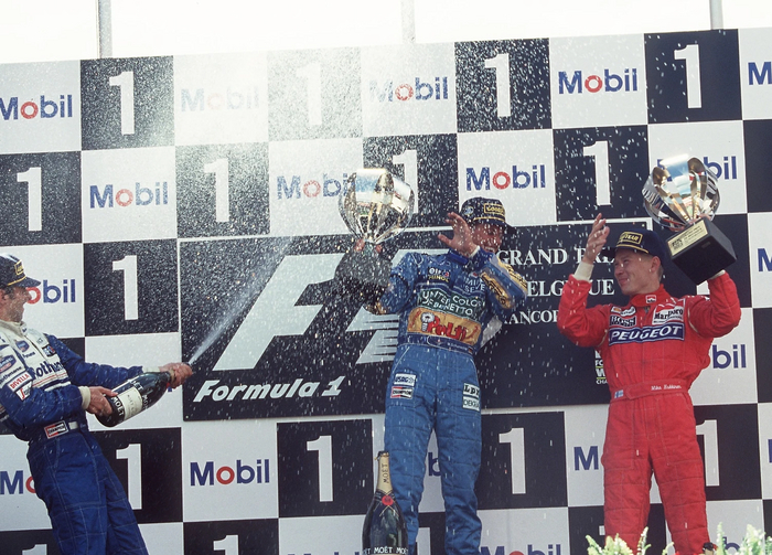 На круге почета, когда Алези въезжал в шпильку на дальнем конце трассы, его машина неожиданно заглохла из-за нехватки топлива. Алези снял руль, встал на машину и «прокатился» на ней до остановки. Михаэль Шумахер, подъехавший сзади после финиша на пятом месте, остановился и подвез Алези обратно в боксы на своем «Бенеттоне», создав один из самых знаковых и запоминающихся моментов в истории «Формулы-1», символизирующий спортивное уважение между соперниками.