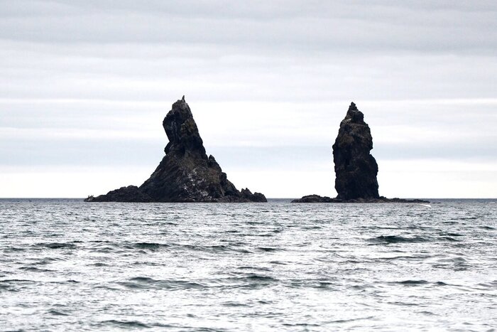Взгляд каждого путешественника притягивают знаменитые на всю Россию кекуры Два Брата. Не близнецы, но определённо родственники – колонны скал больше чем на 20 метров вздымаются над поверхностью моря.