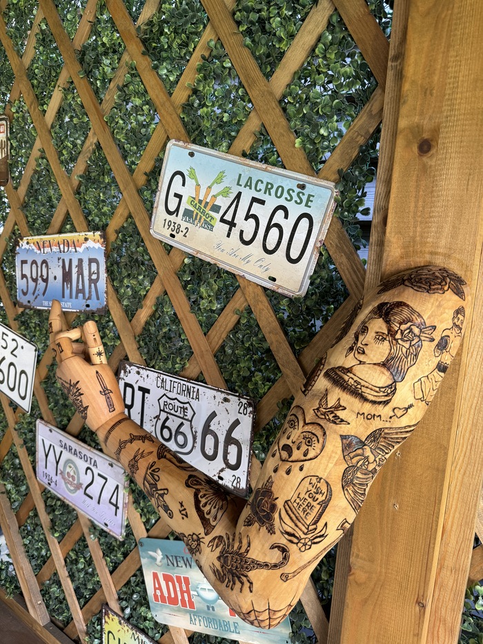 Я задумал сделать ни что иное, как деревянную руку, забитую рукавом с традиком. Не знаю занимается ли кто-то нанесением тату на дереве, но занятие интересное. Обычные тату я бил несколько раз и тату машинка есть, но скажу что процесс на дереве и на коже - кардинально различается...)