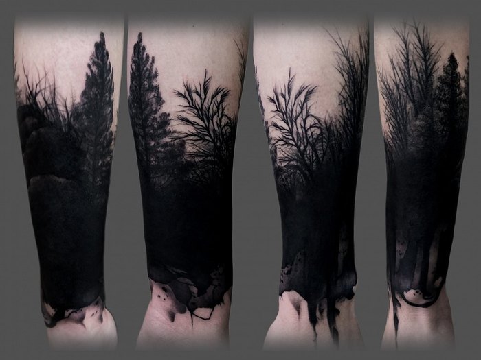 Вокруг предплечья было забито море, кораблик очень отлично вписался во всю картину, а также мы решили расширить количество и длину молний из самой первой татуировки.