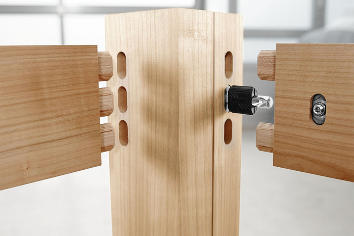 В очередной раз переворачиваю кровать и ещё раз собираю. Присаживаю оставшиеся рейки и доклеиваю брус внутри кровати