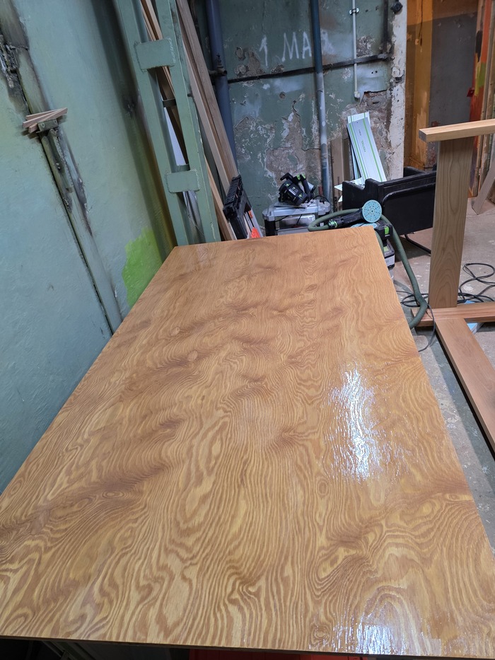Для крыши "первого этажа", да и для "дна кровати" выбрал фанеру из лиственницы. Уж больно красивый рисунок.