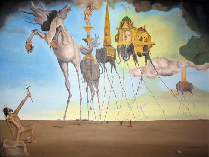 Знаменитые слоны на тонких паучьих ножках — символ нереалистичности и сна. Ведь только во сне возможно передвигаться с таким весом на таких ногах. Сон символизирует и слегка парящее тело Галы.