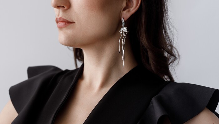 Серьга встала на вершину лучшей в мире коллекции по переосмыслению творчества Дали от Thing Jewelry и прекрасно дополнила ее.