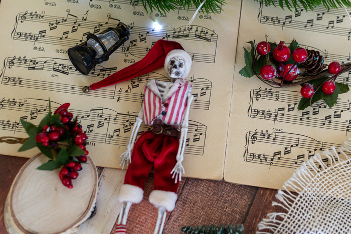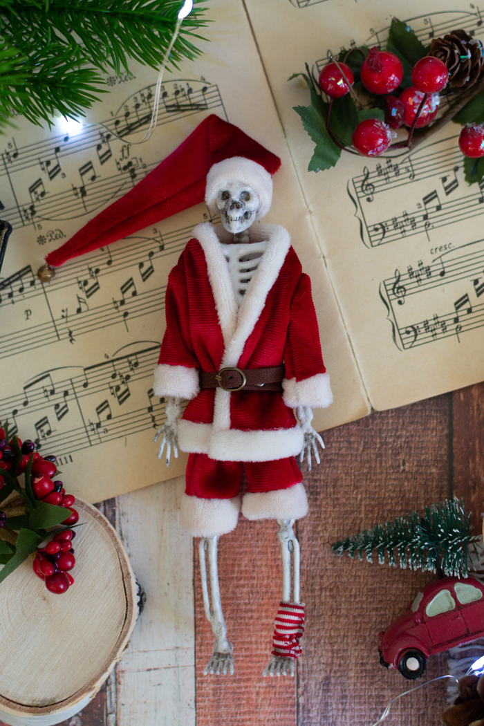 Дочка спрашивала, будем ли мы одевать скелетиков к Новому году, а тут и подруга, у которой живет моя Фридочка, сделала заказ на Плохого Санту. Пришлось исполнять)