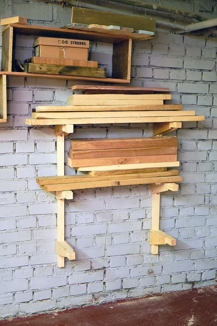 Не все могут похвастаться большой мастерской и даже если мастерская большая то всё равно места в ней часто не хватает. Запас материалов нужно где-то хранить, доски не всегда бывают хорошо прослушанные, и часто им нужно сохнуть очень продолжительное время, неделями, месяцами, а иногда годами. Чтобы всё это время пиломатериал не лежал под ногами, лучше использовать стены, сделать простые, но прочные полки и хранить материал на них.