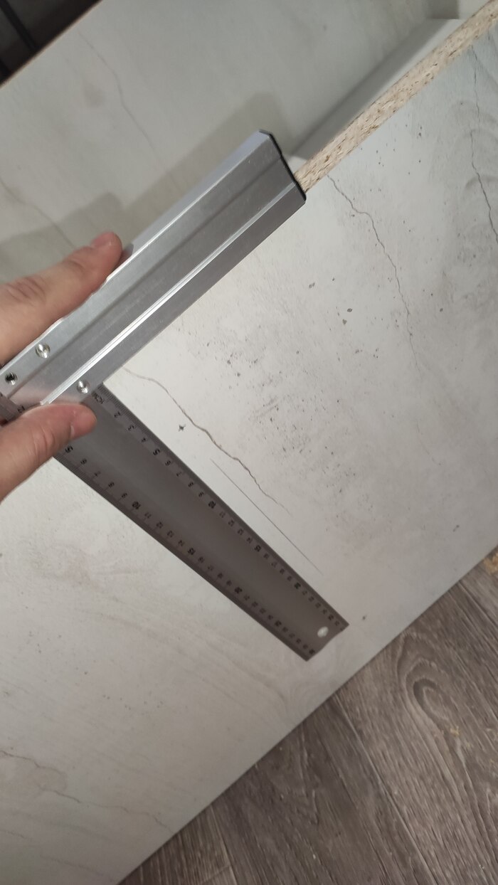 Выкладываем то, как планируем собирать, размечаем 11мм, так как толщина ЛДСП 22 мм, для того чтобы сверлить +- в середину листа.