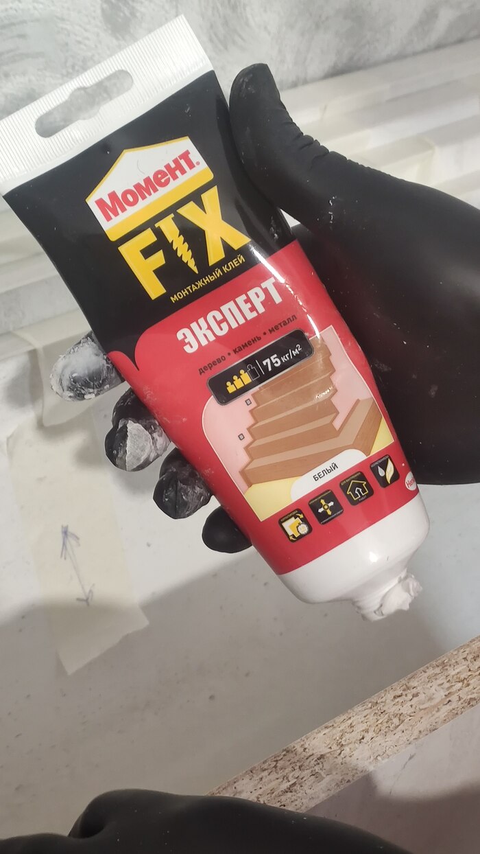 В интернете конкретики никакой, решил клеить на жидкие гвозди. Вот такие. Забегая вперед, мне хватило данной упаковки, тютелька в тютельку