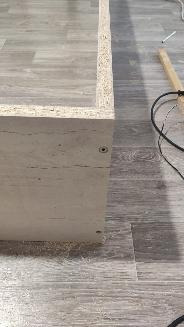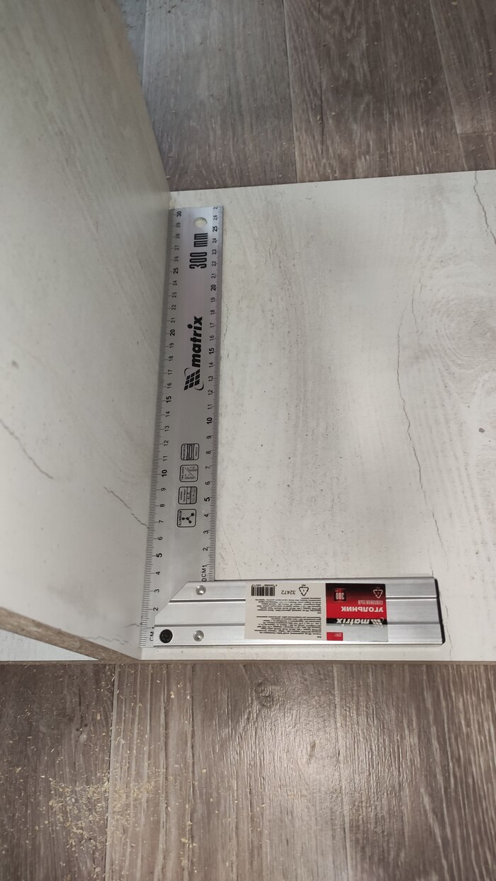 Сначала мы распаковали материал и проверили наличие всех деталей. Стоит отметить, что столешница имела толщину 22 мм, и остатки были той же толщины. Эта толщина создала мне некоторые проблемы. Если делать стеллаж отдельно, то логично предположить, что ЛДСП толщиной 22 мм будет дороже и тяжелее, чем 16 мм, но в итоге никаких преимуществ не будет.
