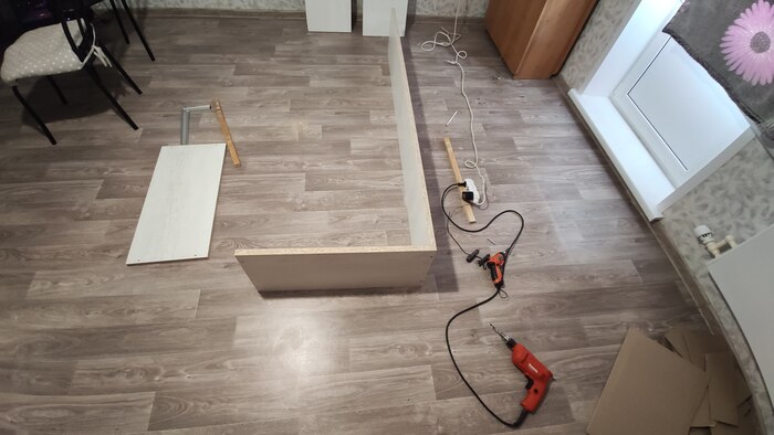Вот такой результат получился. В предыдущем посте люди писали, чтобы я указывал себестоимость, но в чем смысл? Если кто-то действительно хочет повторить проект, он может посмотреть цены на материалы в своем регионе, так как они обязательно будут различаться. У кого-то уже есть инструмент, который мне пришлось приобрести, кто-то может не хотеть клеить кромку самостоятельно и готов заплатить за услугу. Кто-то вообще может позволить себе купить большой лист и самостоятельно его распилить (мне пришлось доплатить за распил, упаковку и доставку, что стоило почти так же, как сам лист ЛДСП).