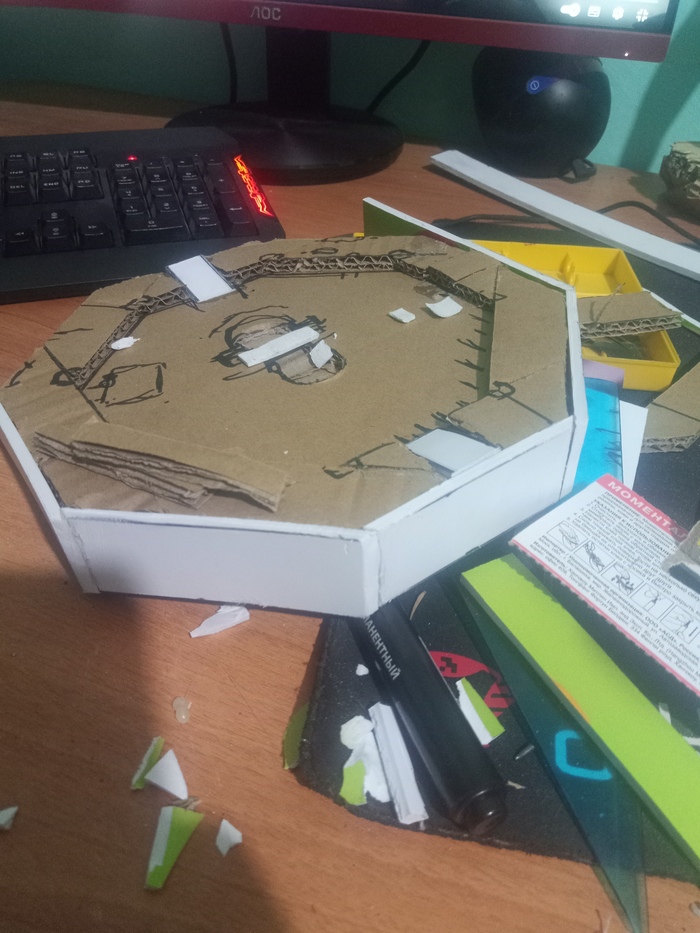 Сверху на подсохшую краску мажу медиум 73.214 от Vallejo. Получается примерно так. Этот медиум надо наносить на ту поверхность, которую потом хотите соскрести.