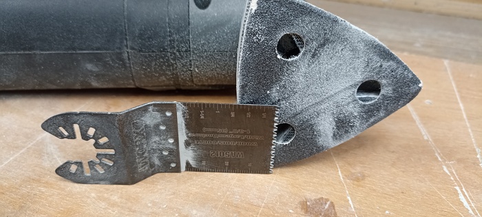 Второй момент - нужно резать под углом и это жутко неудобно. Есть шанс повредить лицевую сторону и идеально никак не получится. И тут я вспомнил про реноватор, купленный более года назад по случаю и которым пользовался в итоге один раз.