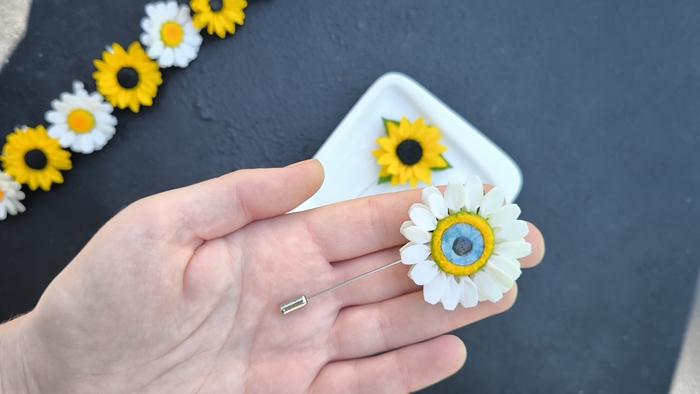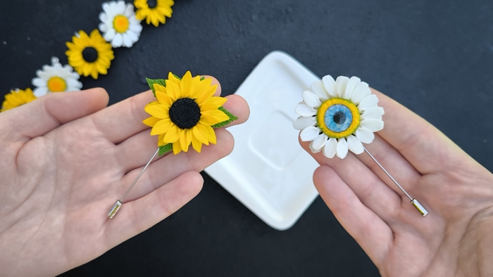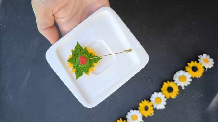 Брошь слеплена из полимерной запекаемой глины.