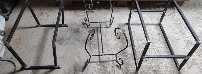 Далее я, как супер-сварщик, сварил несколько подстольев под наши столы. Как видно, подстолья разные.