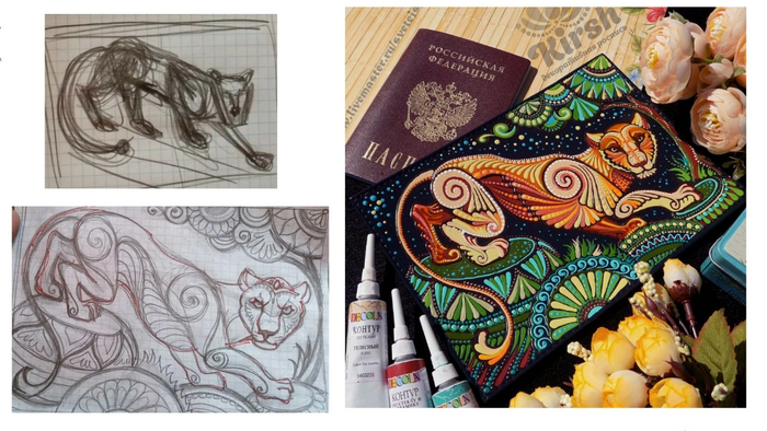Материалы: акриловые контуры, полиуретановый лак (3 слоя).