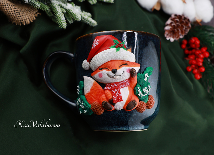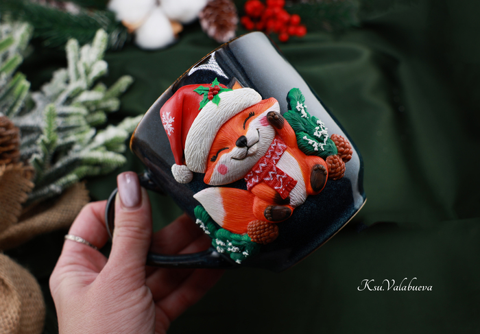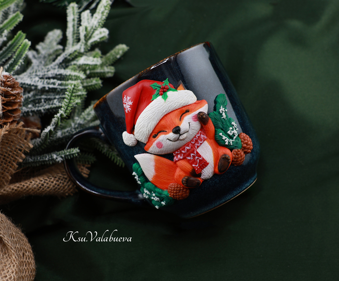 Полимерная глина Лиса Кружка с декором Своими руками Ручная работа Рукоделие Рукоделие без процесса Подарки Новый Год 2026 Длиннопост