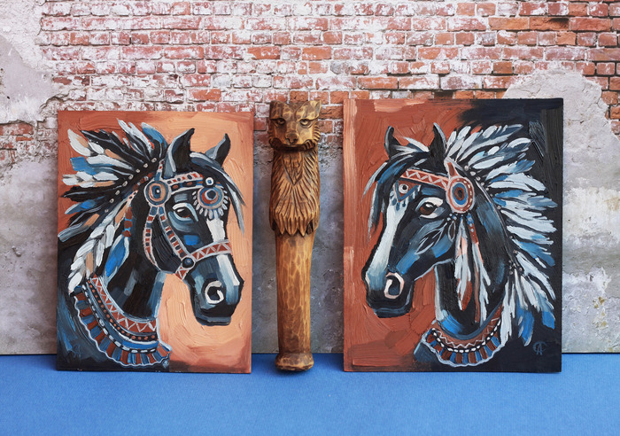 [моё] Лошади Новый Год Символ года Животные Анималистика Индейцы Этника Арт Картинки Картина Картина маслом Жанровая картина Живопись Авторская живопись Художник Творчество Рукоделие Своими руками Декор Длиннопост
