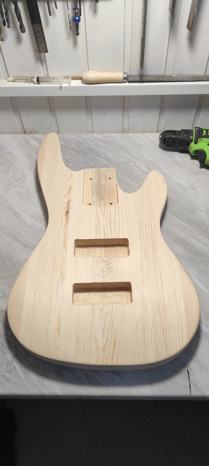 После грубой механической обработки, базового выведения плоскостей и скруглений приходит время дикой ебли чистовой обработки. В принципе основная задача которой - вывести посадочные плоскости под накладку пятки грифа и бридж (тремоло в моем случае). Ну как-бы крайне желательно, чтобы не было заноз. Но мы будем делать хорошо, плохо само получится.