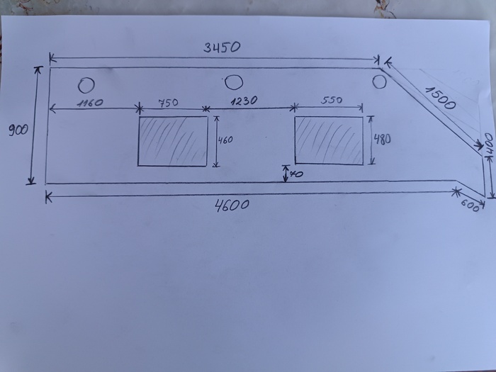 Форма и размеры столешницы получились такими, из-за особенностей расположения участка и изначально установленного забора