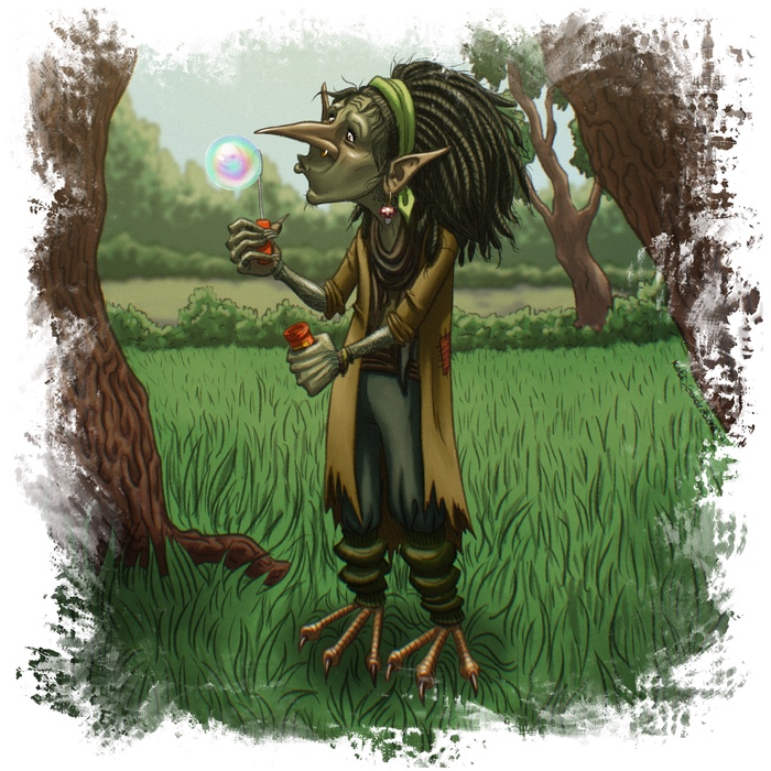 У ее ног копошатся пятеро безобразных младенцев.