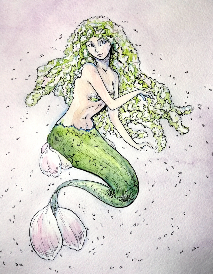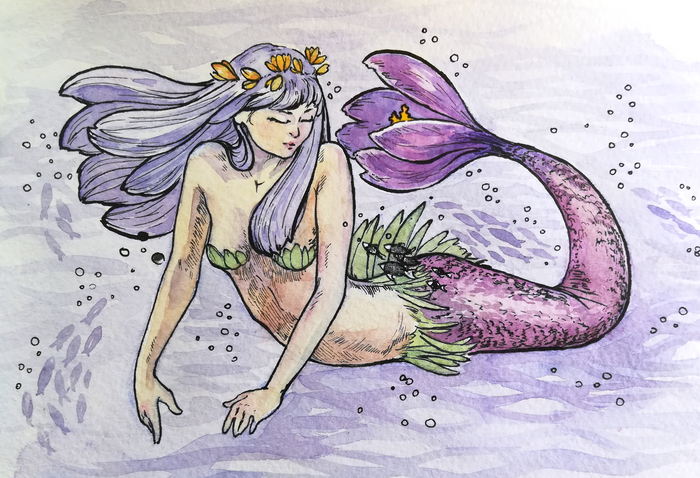 В этом году решила я поучаствовать в челлендже MerMay (челлендж, где художники целый месяц рисуют русалок по заданным темам.